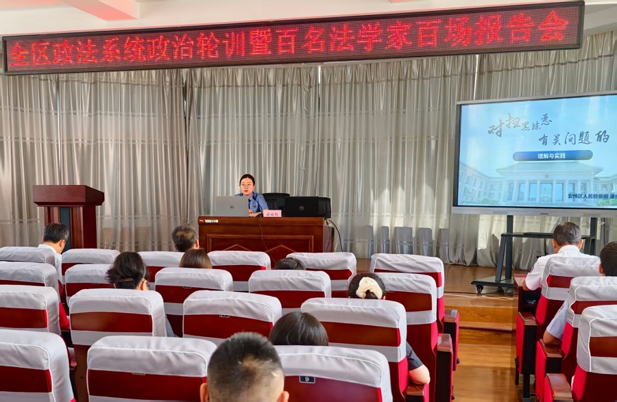 为切实提升政法干警在常态化扫黑除恶工作中的实战本领,筑牢区域平安防线,按照宏伟区政法干警政治轮训部署,宏伟区人民检察院党组成员、副检察长梁婉聪以“对扫黑除恶有关问题的理解与实践”为题,为全区政法系统骨干力量奉上一场聚焦实战、干货满满的精品课程。