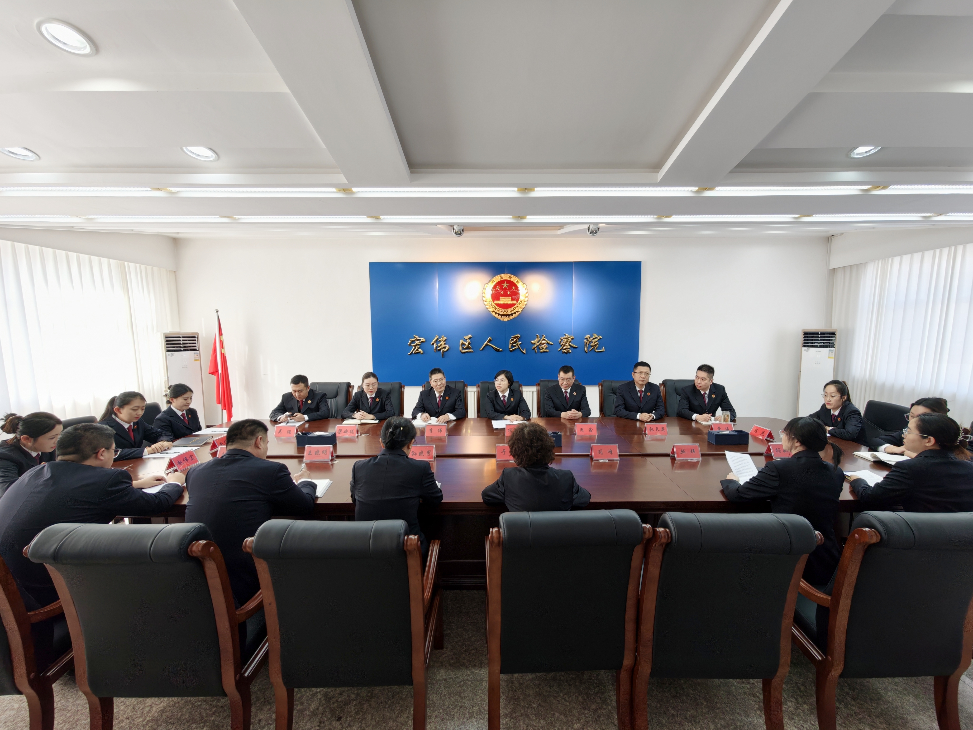 为弘扬检察职业精神,激励青年干警传承使命,1月27日,宏伟区人民检察院举行检察荣誉章颁发仪式暨青年干警成长交流座谈会。院领导班子成员、荣誉章获得者、各部门负责人及青年干警代表参加活动。